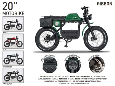 It is ultimate all terrain and all weather such as snow storm, flash rain, muddy surface and more vintage fat tire e-motobike.
